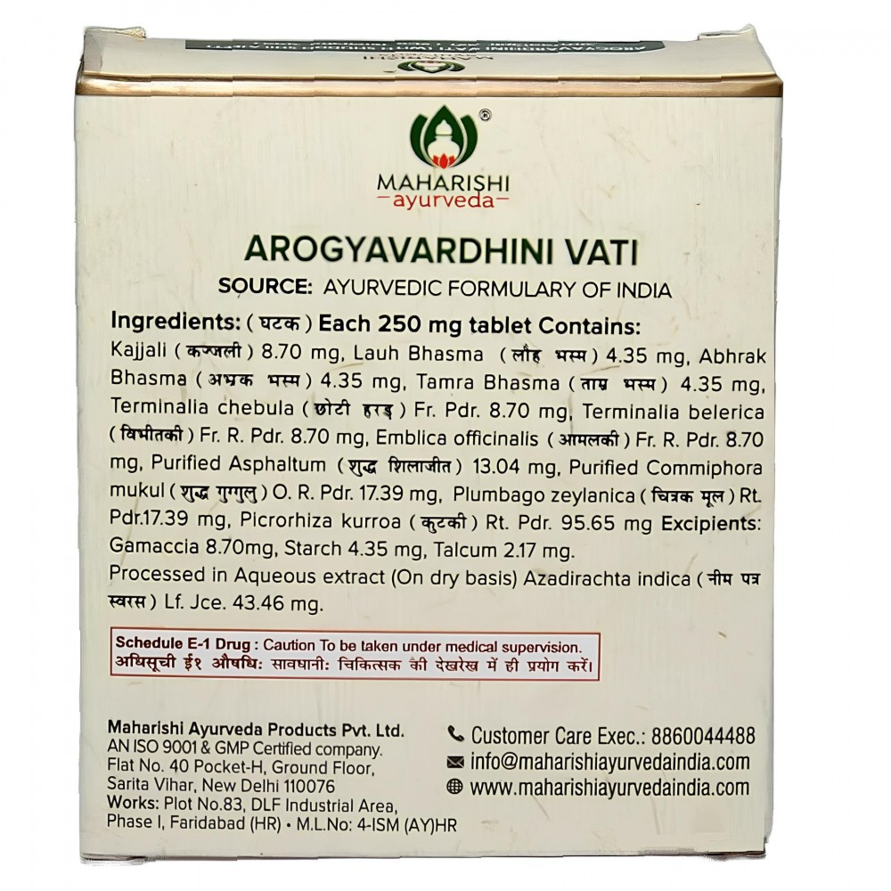 Слово Арог'я означає "добре здоров'я" і Вардхіні означає "поліпшувач". Ця аюрведична формула використовується для усунення дисбалансу всіх трьох дош.