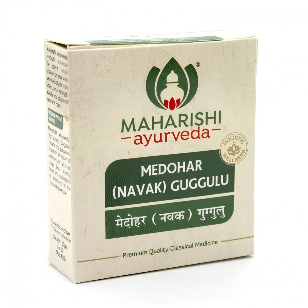 Медохар гуггул - є унікальним аюрведичним препаратом, створеним для вирішення проблем з ожирінням та зайвою вагою. Ця класична формула чудово балансує рівень холестерину і використовується для усунення дисбалансу кафа доші, один із найкращих препаратів для очищення лімфатичної системи. Крім цього, він покращує метаболізм та роботу травної системи.